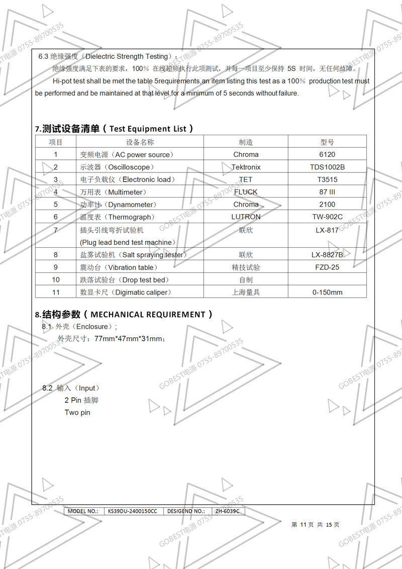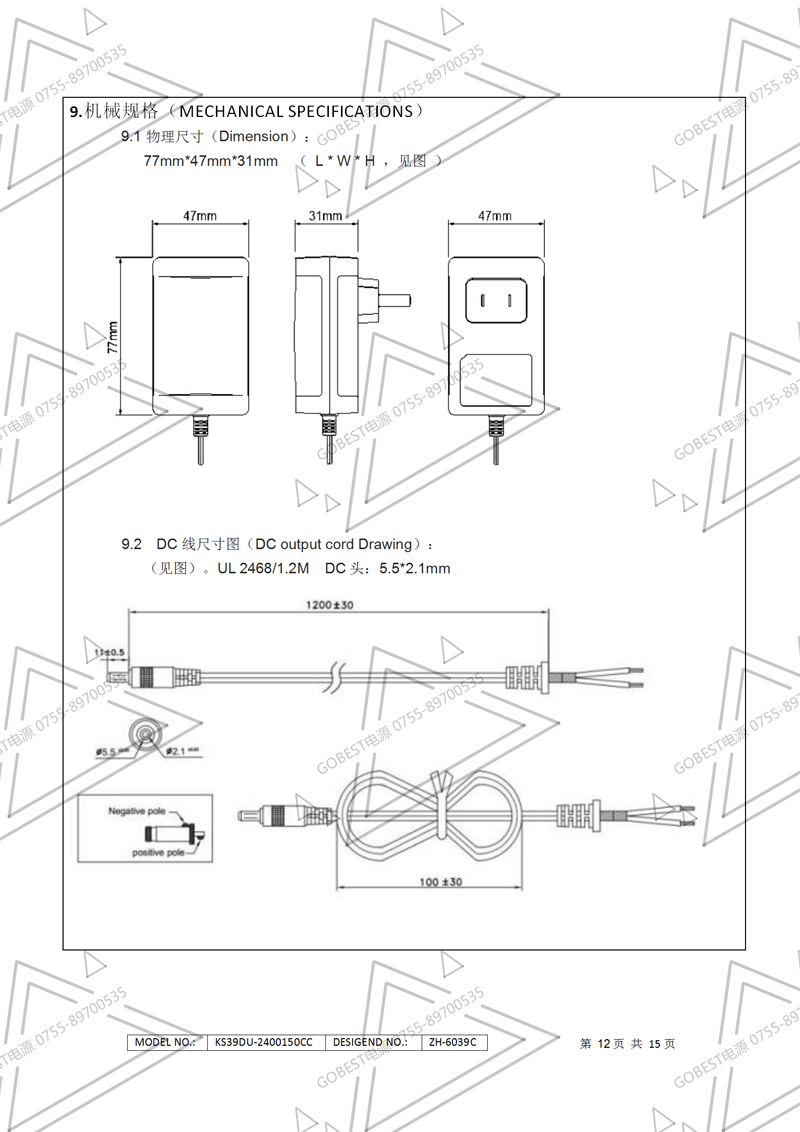 19V3.5A電源適配器規格書
